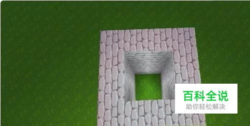然后在四个角落做一个围墙,先做一个圆石框架然后放门。