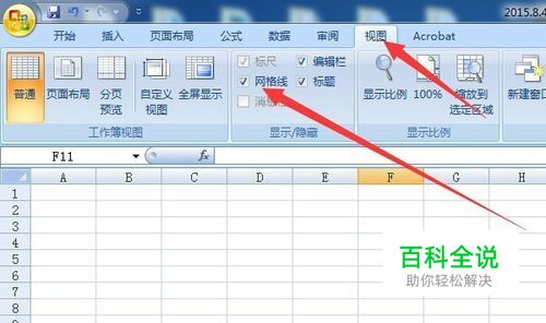 为了显示网格线,我们选择“视图”——“网格线”。一般情况下,我们就可以看到下图所示的效果了。