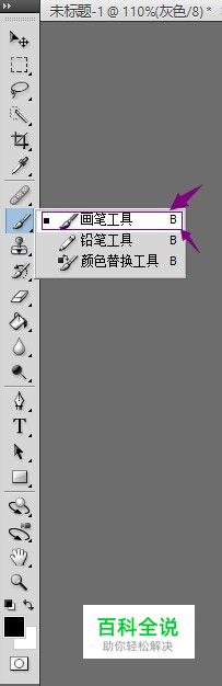 我调出喷枪工具的原理是用画笔工具做出喷枪的效果来,所以我们要先选择画笔工具。