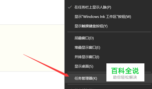 如图所示位置中,点击鼠标右键,然后在弹出的窗口中,点击 任务管理器。