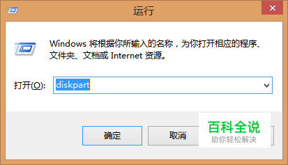 按<win+R>组合键打开运行,输入diskpart,打开分区工具。如图所示
