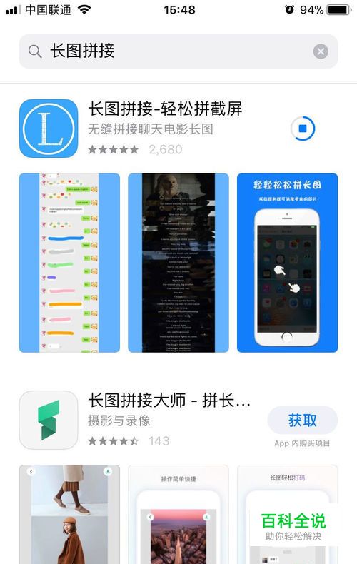 在app store搜索“长图拼接”,首先需要下载安装该软件。