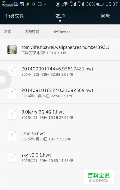 把下载好的hwt格式的主题包放在,手机存储/HWthemes的目录下