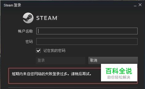 steam登录提示;短期内来自网络的失败登陆过多,请稍后再试