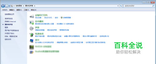 按照一图设置点击硬件和声音,然后点击【电源选项】。