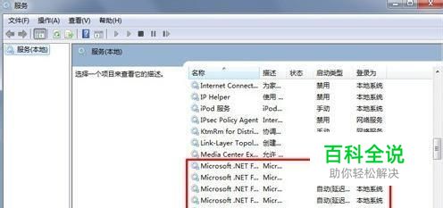 3、找到Microsoft .NET Framework NGEN v2.0.50727_X64和Microsoft .NET Framework NGEN v2.0.50727_X86以及其他以Microsoft .NET Framework 开头的服务
