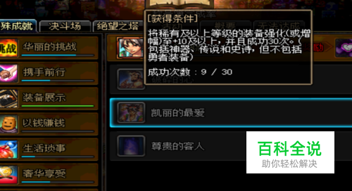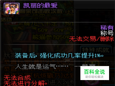 首先是称号,完成相应的条件可以获得一个凯里的强化称号(可以在称号簿里找到)