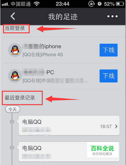 这时就会弹出一个【我的足迹】窗口,它详细地显示了【当前记录】和【最近登录记录】,很好地方便你掌控QQ登录状态。