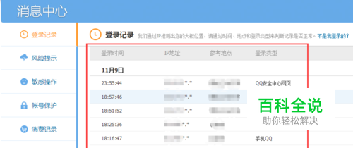 在弹出的页面,就可以清楚地了解QQ登录情况了,包括登录的具体时间、IP地址、城市和登录设备,都可以一目了然。