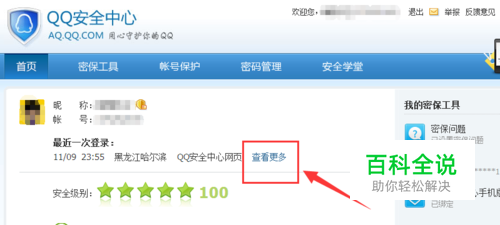 进入【QQ安全中心】首页,就可以看到最近一次的登录情况。然后点击【查看更多】。