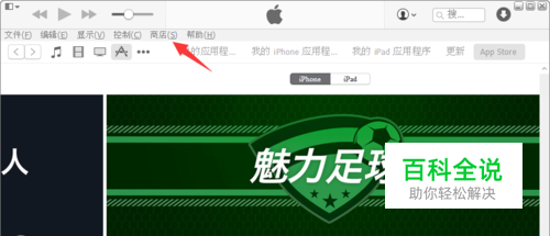 步骤一:打开苹果iTunes软件,在iTunes软件栏目里有“商店”选项(如图),我们就点击进入到选项里面。