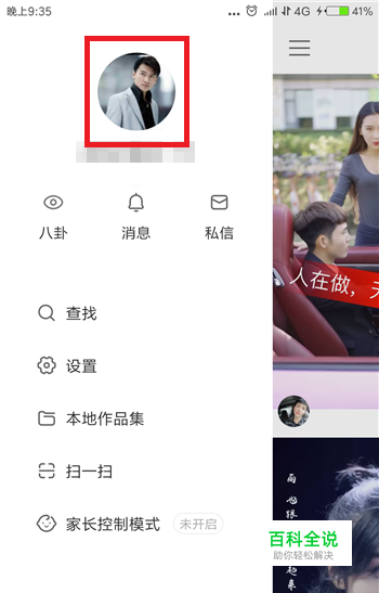 点击后会在左侧出现更多选项界面,点击我们的快手头像打开个人主页。