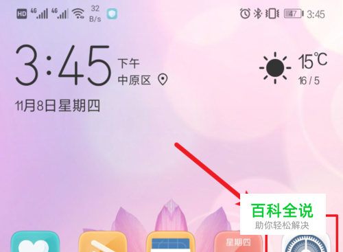 解锁进入我们华为手机桌面,选择手机的设置的图标进入。