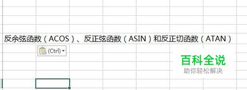 Excel中计算反三角函数需要用到反余弦函数(ACOS)、反正弦函数(ASIN)和反正切函数(ATAN)。