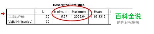 我们看到有一个表格,输出了最大值和最小值,根据这个值我们可以判断,这个变量中的数据是不是超出了合理的范围,比如,这个变量的意思是身高,你的数据的最大值为5米,这时侯你就可以想到,有数据录入错误了。