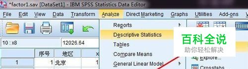 先准备好数据,然后打开描述性统计对话框,如图所示,执行菜单:analyse--descriptive statistic--descriptive