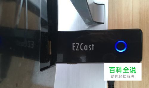本次投屏使用的是支持HDMI接口输入的显示器。将投屏插在显示器的HDMI接口上,用5V1A的电源供电,打开投屏器的开关,此时投屏器会亮起蓝灯