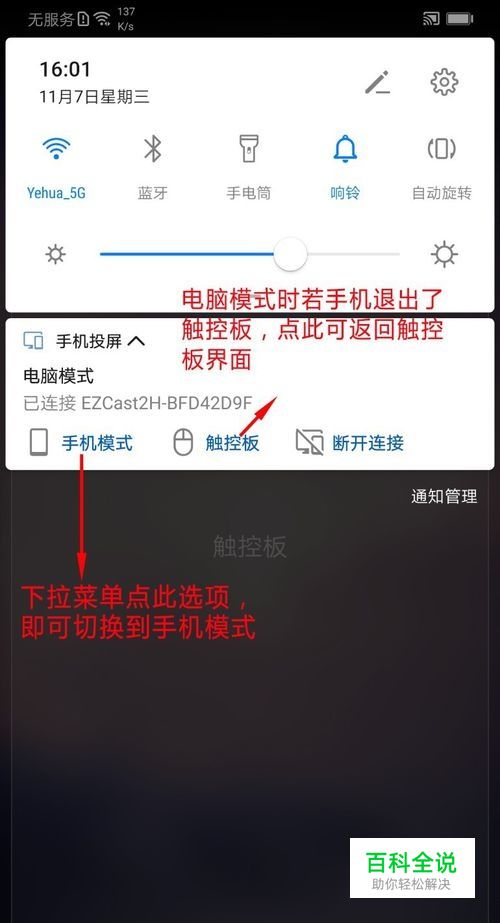 初次连接会进入电脑投屏模式,手机会变成触控板界面