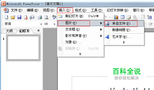 打开PowerPoint软件,点击“插入”→“图片”→“来自文件”,选择本地磁盘中需要进行透明化处理的图片,点击“插入”。