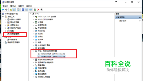 第一步在我们的电脑里面鼠标右键此电脑,选择管理,进去管理界面之后,点击设备管理器->声音、视频和游戏控制器,如下图所示: