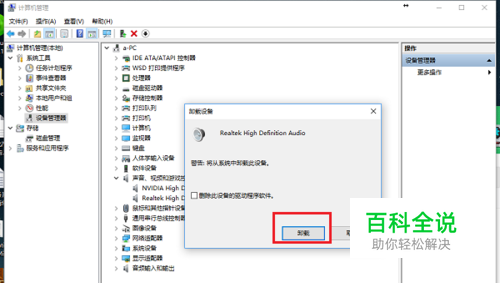 第二步将声音、视频和游戏控制器下面的两个声卡驱动全部卸载掉,如下图所示: