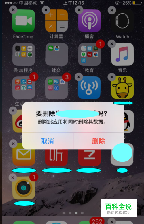 小编这里用删除一个app做演示。 首先长按一个想要删除的app,出现×后点击删确认删除除该软件。