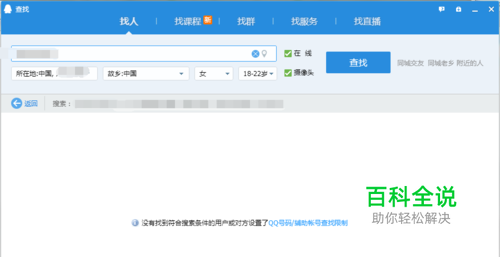在打开的那个“查找”界面上,小伙伴们完整输入自己的qq账号到内容栏,点击右边的“查找”按钮后,就会发现它搜索不到自己的qq账号啦。温馨提醒一下,前面设置好以后,有时候系统没有反应那么快,所以我们设置关闭查找的功能后,应该稍等一会再来搜索自己的qq账号。