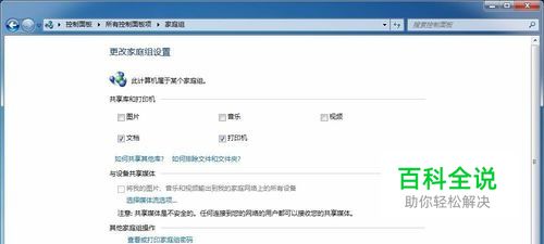 选择家庭组与共享选项。