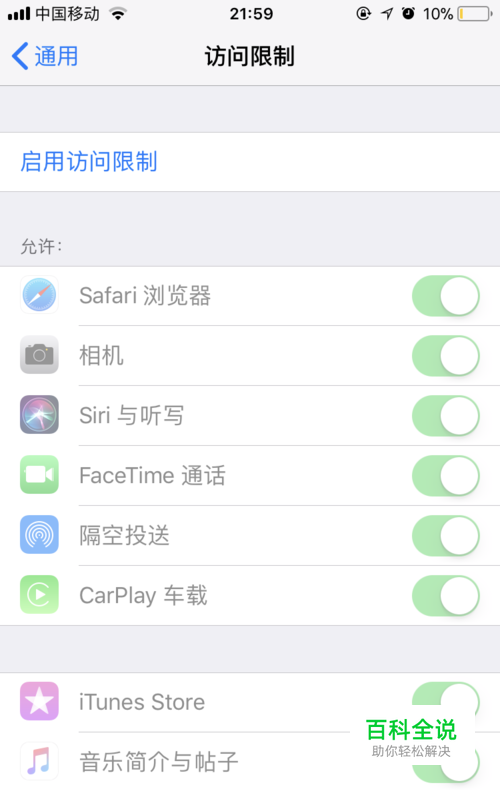 隐藏下载的app 我们还是在我们访问限制界面,往下拉选择允许的内容中的应用。