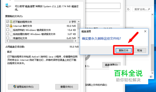 在点击【确定】后弹出的对话框,选择【删除文件】,删除过程中请耐心等待。