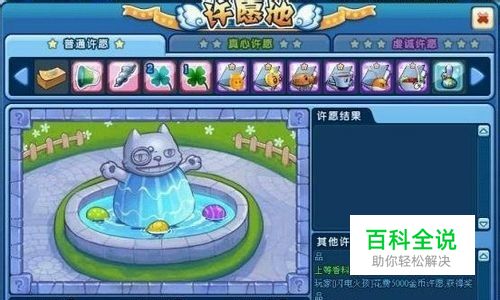 总共有三种许愿方式:使用金币或者点券不同,许愿获得的奖品也不同