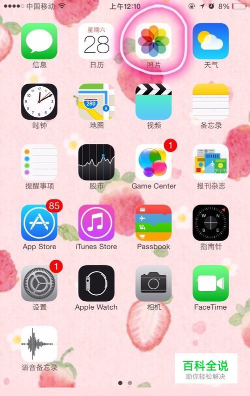 打开桌面,点击红色圈内“照片”