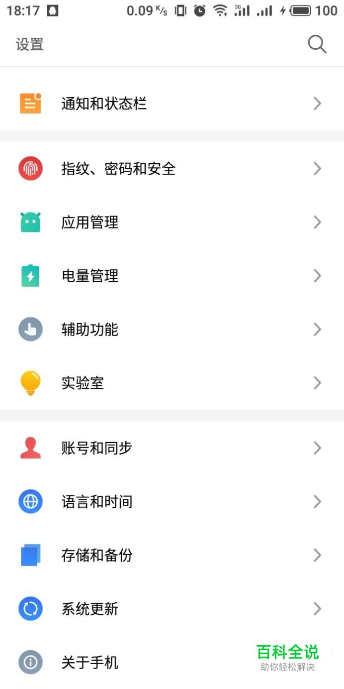 进入手机系统设置界面,在下方选项中点击“存储和备份”