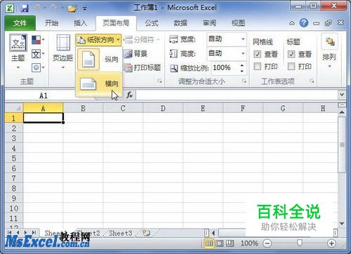 方式1:打开Excel2010工作表窗口,切换到“页面布局”功能区。在“页面设置”分组中单击“纸张方向”按钮,并在打开的列表中选择“纵向”或“横向”选项即可,如图2010081312所示。 图2010081312 选择“纵向”或“横向”选项