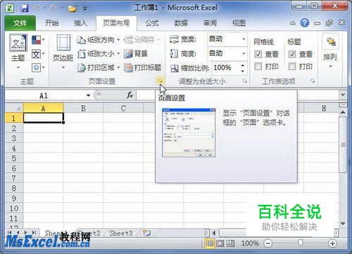 方式2:打开Excel2010工作表窗口,切换到“页面布局”功能区。在“页面设置”分组中单击“显示页面设置对话框”按钮,如图2010081313所示。 图2010081313 单击“显示页面设置对话框”按钮
