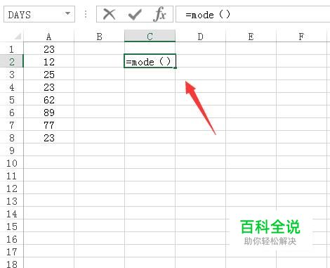 在选择的单元格内我们输入mode函数,如图所示: