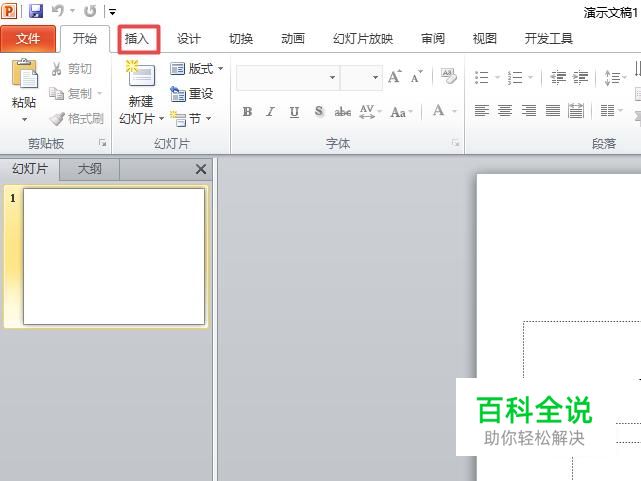 首先,我们打开我们电脑上面的ppt,然后我们点击插入;