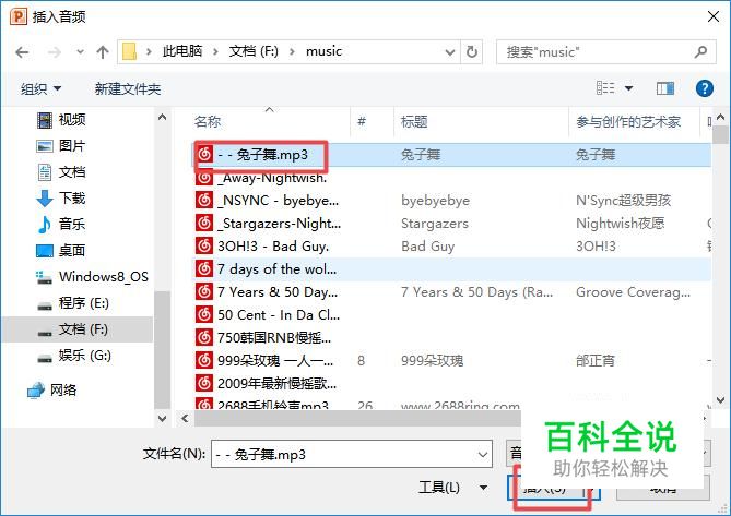 弹出的界面,我们选择一个音乐,然后点击插入;
