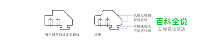 1、对多段线加圆角或删除圆角 如果想对多段线上适合圆角半径的每条线段的顶点处插入相同长度的圆角弧,可在倒圆角时使用“多段线(P)”选项,如下图所示。