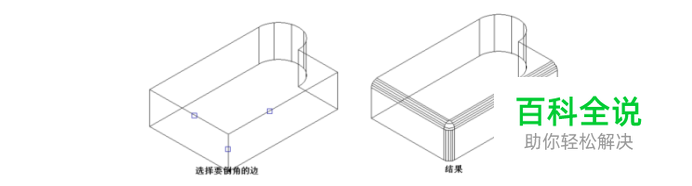 2、三维实体倒圆角 浩辰CAD的Fillet命令不仅可以对二维线形进行倒角,也可以对三维实体进行倒角。当选择三维实体上需要倒角的边时,会提示输入圆角半径,输入半径后可以选择一条或多条边同时倒圆角,如下图所示。