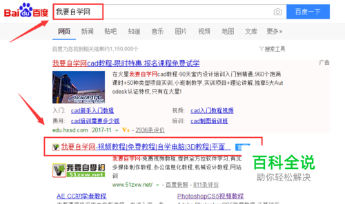 如图,打开浏览器,搜索“我要自学网”,点击进入