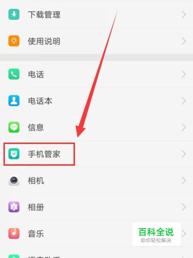 进入设置界面之后,找到手机管家,点击并进入,如图所示。