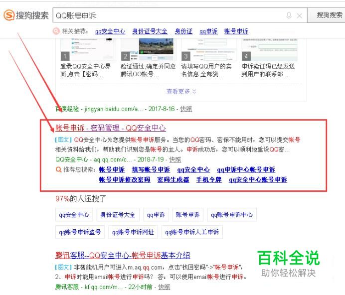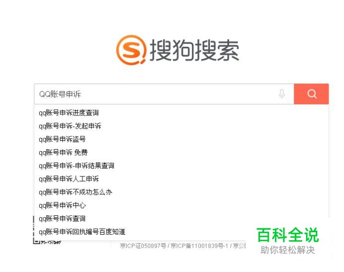 首先打开搜狗浏览器,输入“QQ账号申诉”,点击搜索,进入官网。