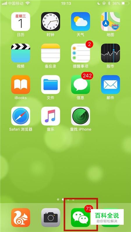 首先在我们的手机桌面上找到微信并点击它,如下图所示。