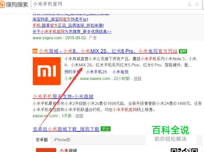 首先用搜狗浏览器找到小米手机的官方网站,如下图