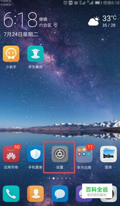 首先,我们打开我们的华为手机,然后点击手机桌面上的设置;