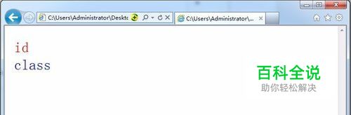 首先,新建test.html网页文档,代码如下: <html> <head> <link rel="stylesheet" type="text/css" href="test.css" /> </head> <body> <span id="ss">id</span> <div class="dd">class</div> </body> </html> 如图: