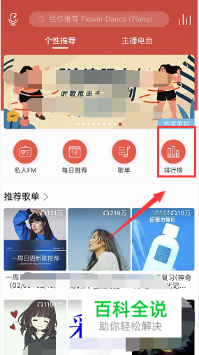 进入网易云音乐首页,点击榜单,如下图所示