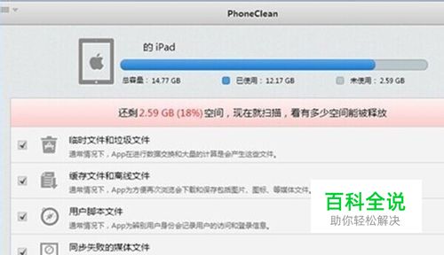 小编以ipad为例,把需要清理的选项全部都勾选,现在点“开始扫描”,如图;