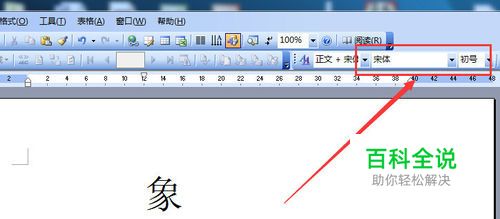 打开word字处理软件,先设置字体字号,我这里选择宋体,初号。然后输入一个字,比如象棋的象字。